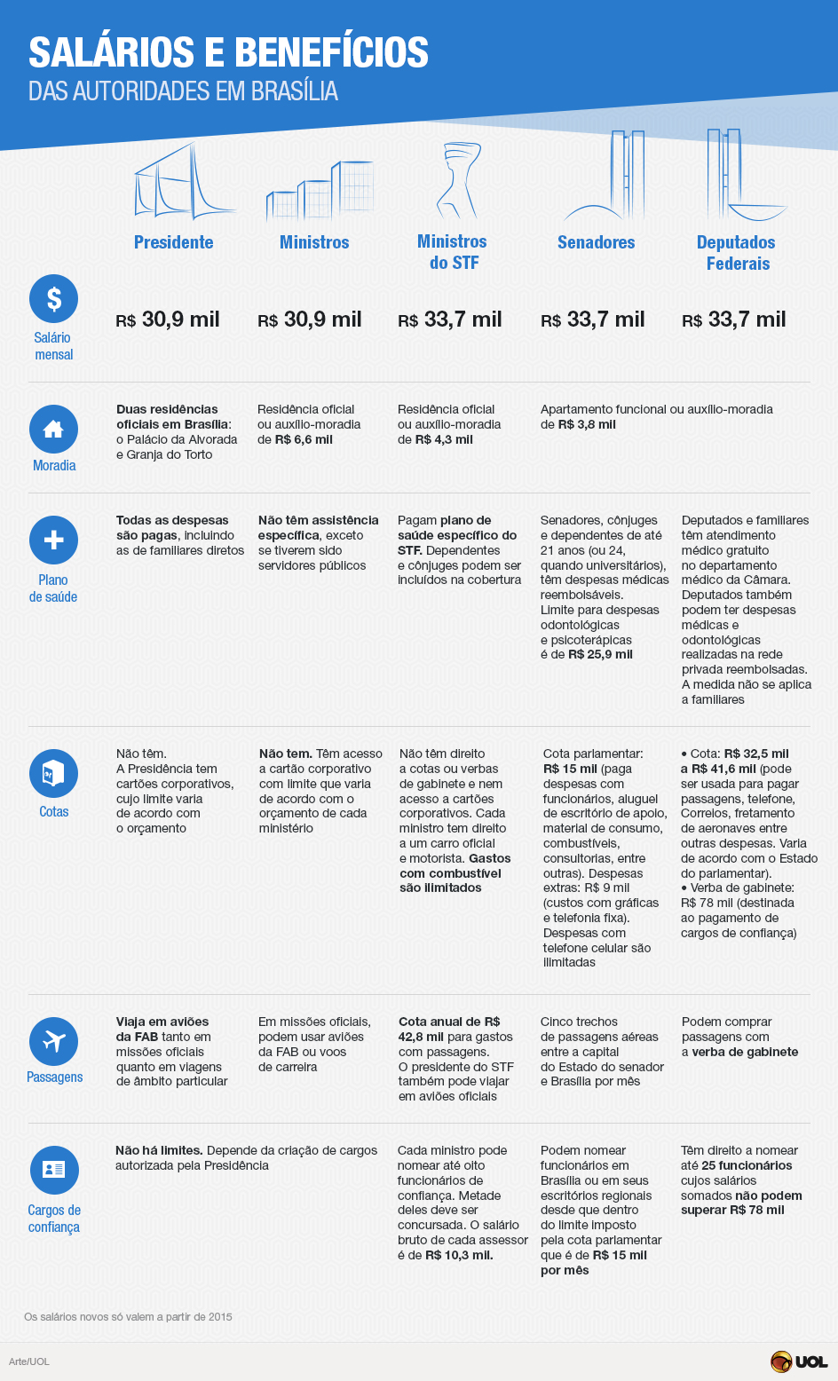 Veja o quanto Dilma, deputados, senadores e ministros do STF ganham